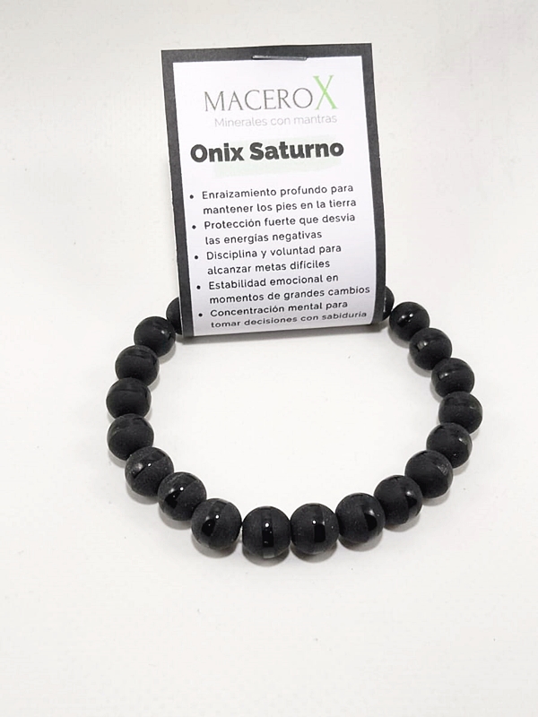 • Mineral: Ónix Saturno natural (cuentas de 10mm con banda pulida característica).