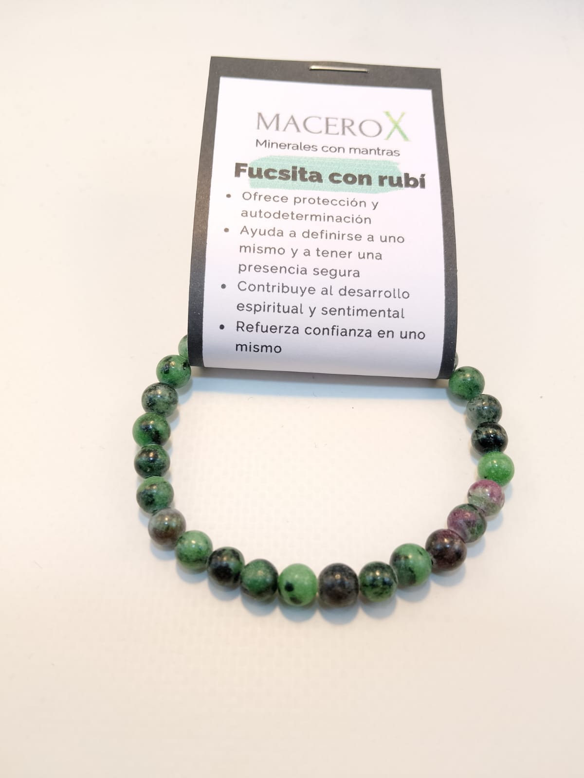 Pulsera de piedras elástica con mineral de Fucsita con Rubí en bolas de 6mm.