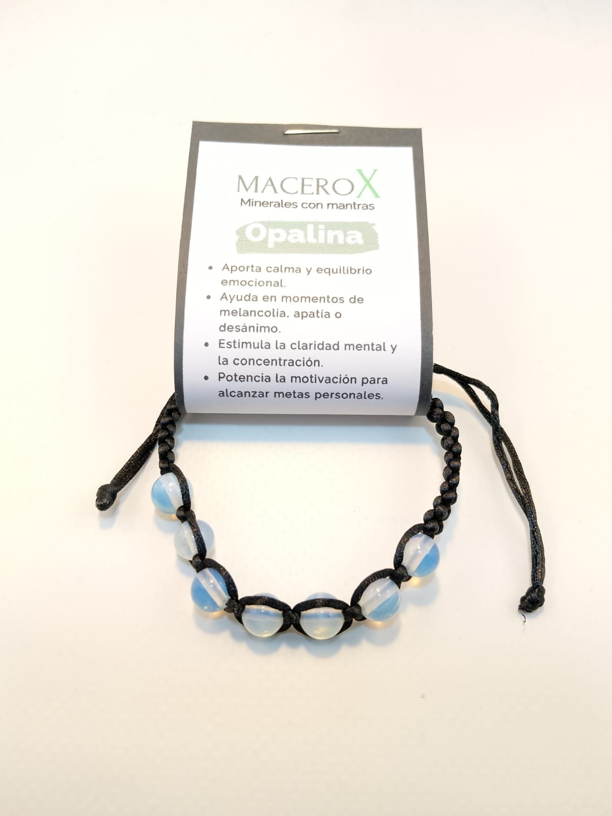 Pulsera trenzada de nudo corredizo con piedra natural de Opalina de 8mm.
